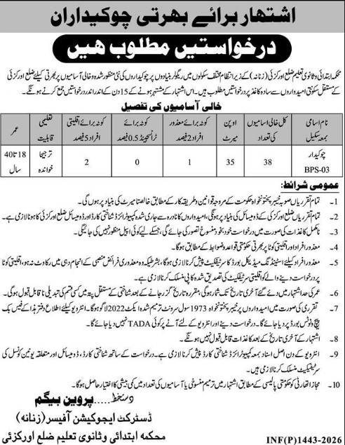 Only male candidates can apply for the Gatekeeper Jobs in School 2026. Apply Now Qualification /Experience Required: At least Middle Pass, Primary Pass, Matric Pass, Good skills, and more experienced candidates should apply within 15 days.